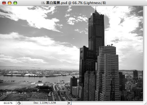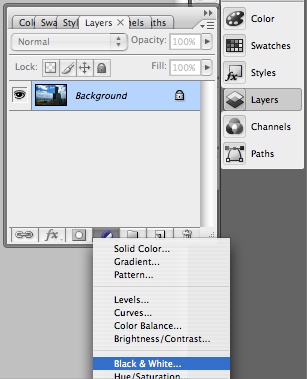 1.開啟欲轉成黑白的數位影像後,在Layers裡開啟Adjustment Layer/Black & White。